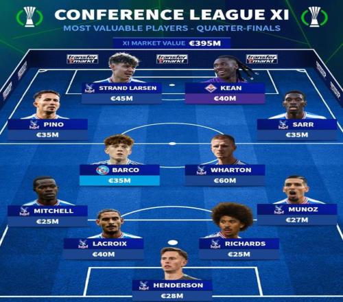 北京时间4月9日,在欧协联1/4决赛首回合的比赛即将打响的情况下,德转列出了赛事这一阶段8支参赛球队最贵的11人阵容,水晶宫9人入围,另外两名球员则是佛罗伦萨前锋莫伊塞-基恩和斯特拉斯堡中场巴伦廷-巴尔科。